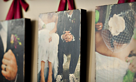 Photographers Lindsay & Todd touch-up client’s favorite photos and print them on wood boards and blocks.