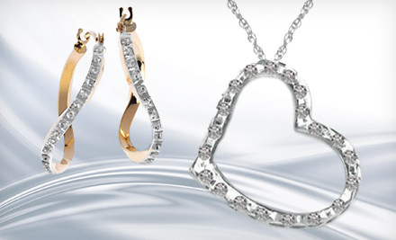 Diamond Fascination Platinum Floating Heart Pendant or 14K Diamond Wave Hoop Earrings (Up to 67% Off)