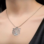 Measuring approximately 0.66″x1.50″ and crafted from sterling silver, the nameplate necklace can be personalized with up to 10 letters, up to 2 of which can be capitalized. The necklace comes with an 18-inch sterling silver link chain.